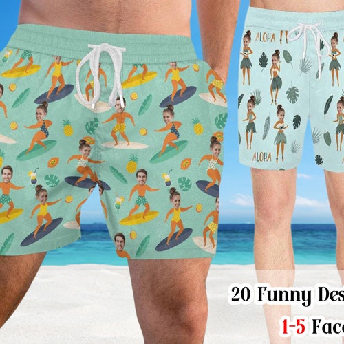 Custom Men Bathing Suit Funny Swim Trunks Personalized Face Etsy